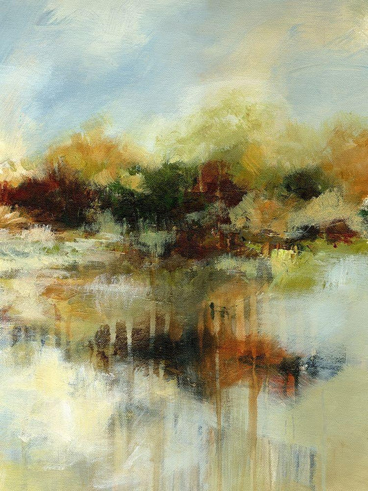 Autumn Pond II White Modern Wood Framed Art Print with Double Matting by Brey