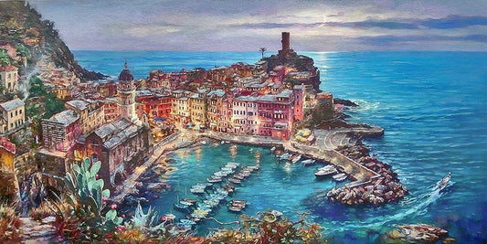 Vernazza View White Modern Wood Framed Art Print with Double Matting by Bolokofsky, Ronald