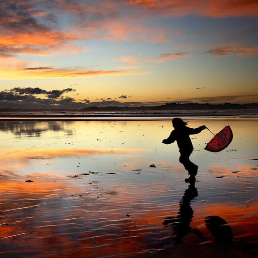 Footprints in the Sand White Modern Wood Framed Art Print with Double Matting by Atkinson, Caroline