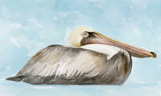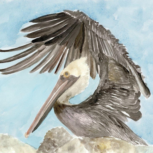 Soft Brown Pelican I White Modern Wood Framed Art Print with Double Matting by Stellar Design Studio