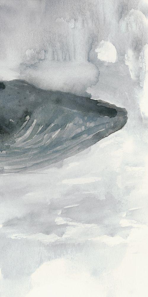 Blue Whale Triptych III White Modern Wood Framed Art Print with Double Matting by Stellar Design Studio