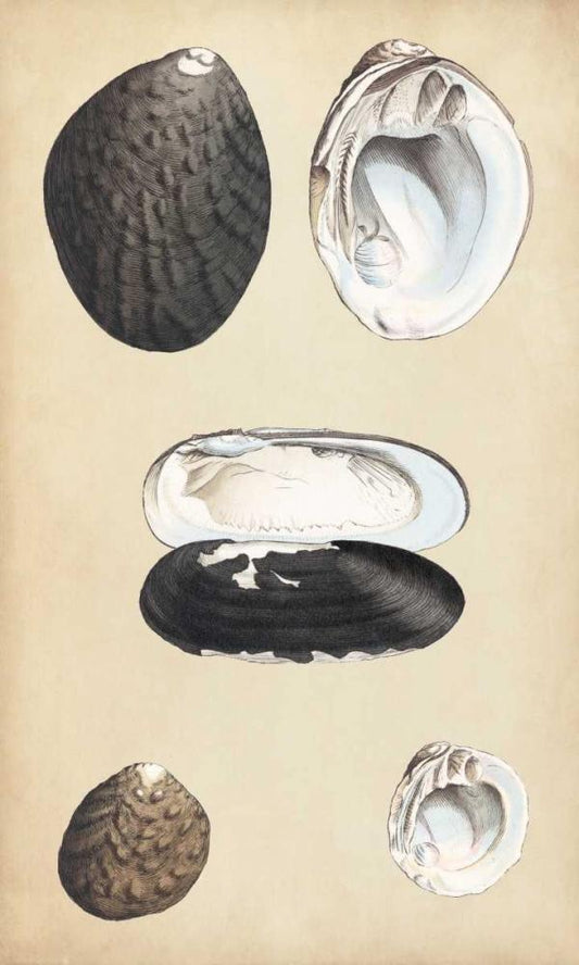 Marine Bivalves I White Modern Wood Framed Art Print with Double Matting by Wood