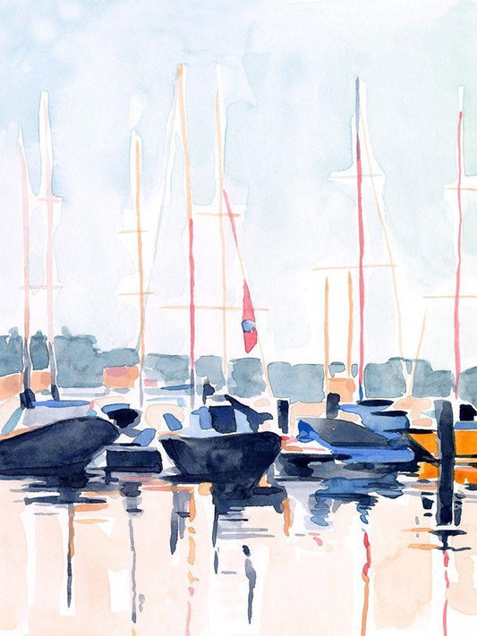 Watercolor Boat Club II White Modern Wood Framed Art Print with Double Matting by Scarvey, Emma