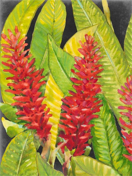 Red Tropical Flowers I White Modern Wood Framed Art Print with Double Matting by OToole, Tim