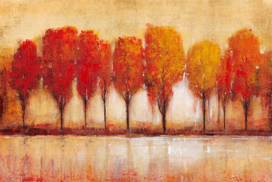 Autumn Waters Edge White Modern Wood Framed Art Print with Double Matting by OToole, Tim