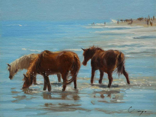Chincoteague Ponies White Modern Wood Framed Art Print with Double Matting by Larivey, Chuck
