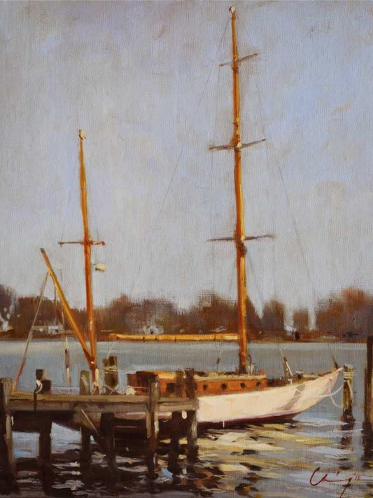 James River from Belle Isle I White Modern Wood Framed Art Print with Double Matting by Larivey, Chuck