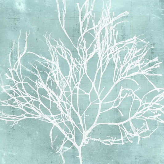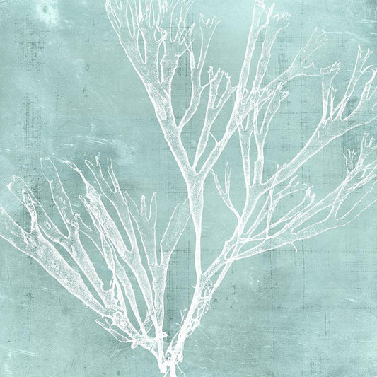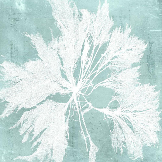 Seaweed on Aqua IV White Modern Wood Framed Art Print with Double Matting by Vision Studio