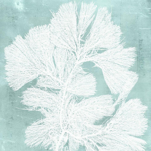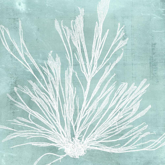 Seaweed on Aqua III White Modern Wood Framed Art Print with Double Matting by Vision Studio
