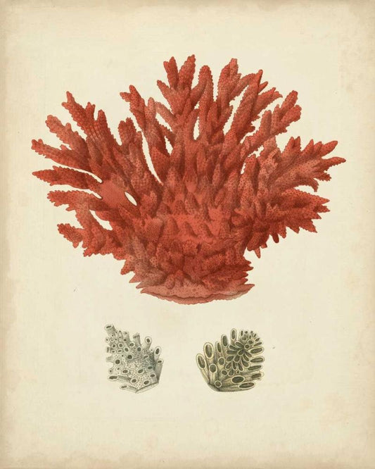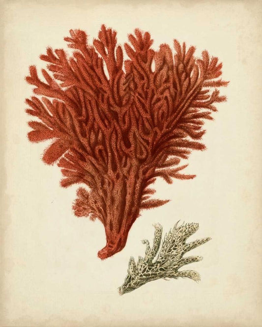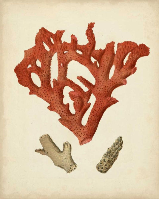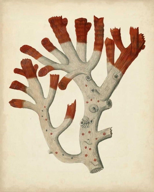Antique Red Coral IV White Modern Wood Framed Art Print with Double Matting by Vision Studio