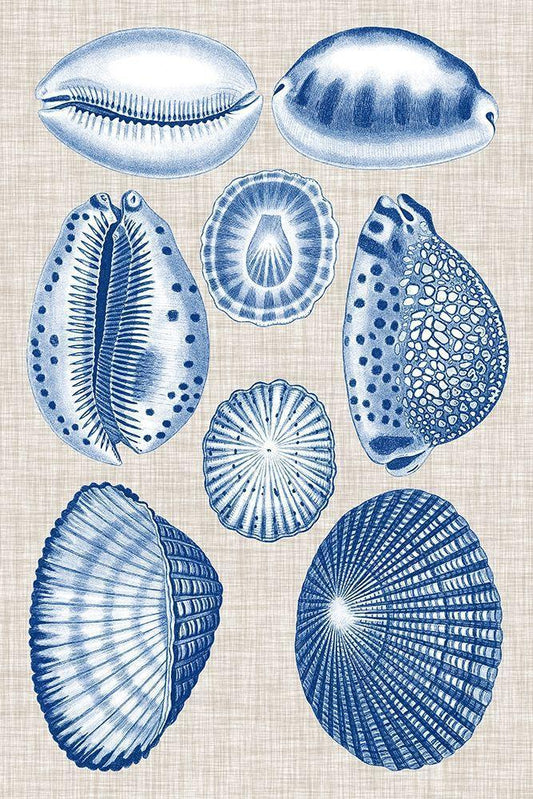 Navy and Linen Shells I White Modern Wood Framed Art Print with Double Matting by Vision Studio