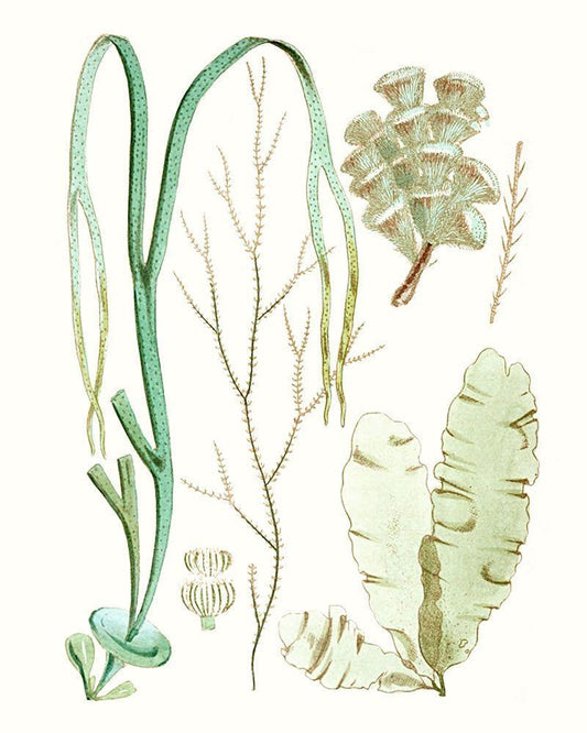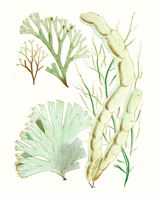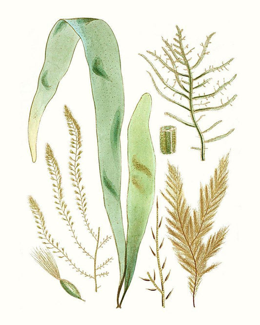 Antique Seaweed Composition IV White Modern Wood Framed Art Print with Double Matting by Vision Studio