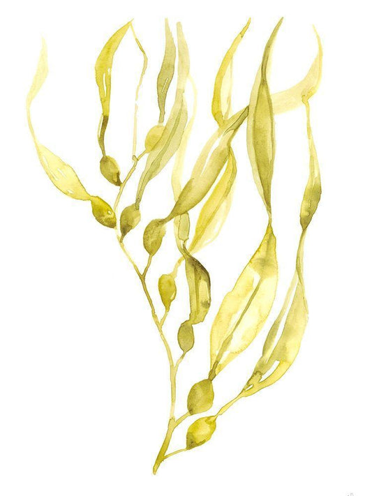 Olive Sea Kelp I White Modern Wood Framed Art Print with Double Matting by Goldberger, Jennifer