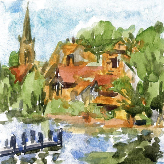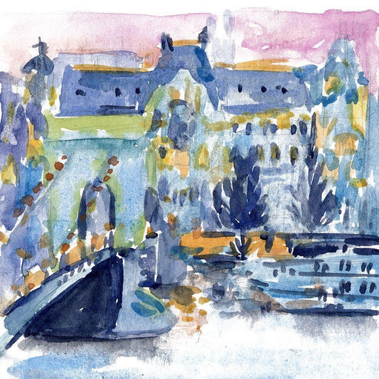 River City I White Modern Wood Framed Art Print with Double Matting by Wang, Melissa