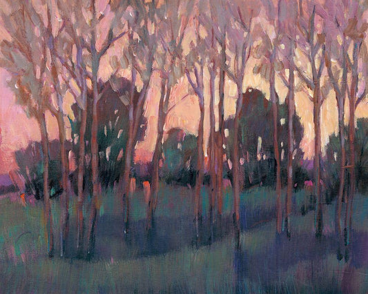 Trees Aglow I White Modern Wood Framed Art Print with Double Matting by OToole, Tim