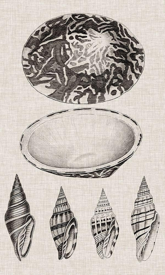 Charcoal and Linen Shells I White Modern Wood Framed Art Print with Double Matting by Vision Studio