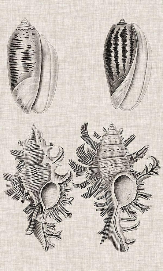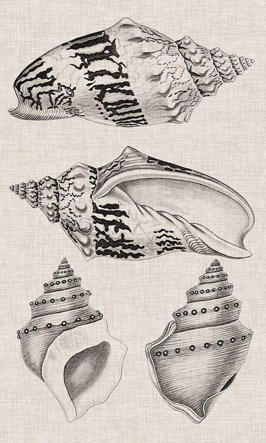 Charcoal and Linen Shells IV White Modern Wood Framed Art Print with Double Matting by Vision Studio
