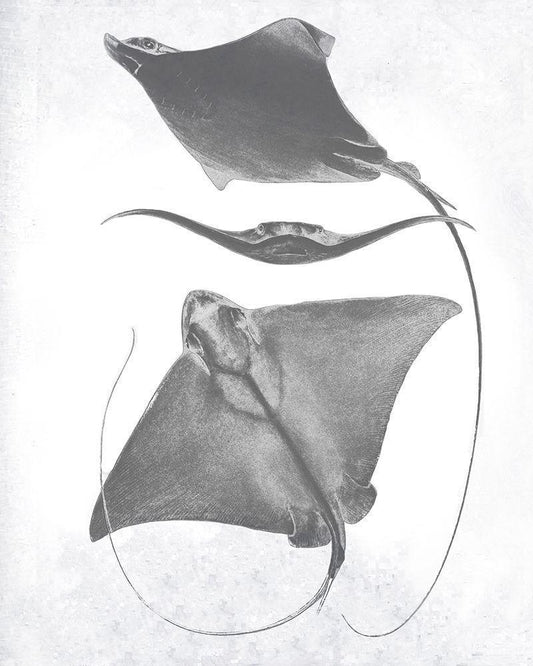 Grey-Scale Stingrays III White Modern Wood Framed Art Print with Double Matting by Studio W