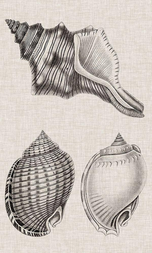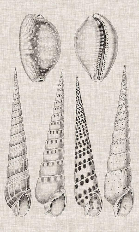 Charcoal and Linen Shells II White Modern Wood Framed Art Print with Double Matting by Vision Studio
