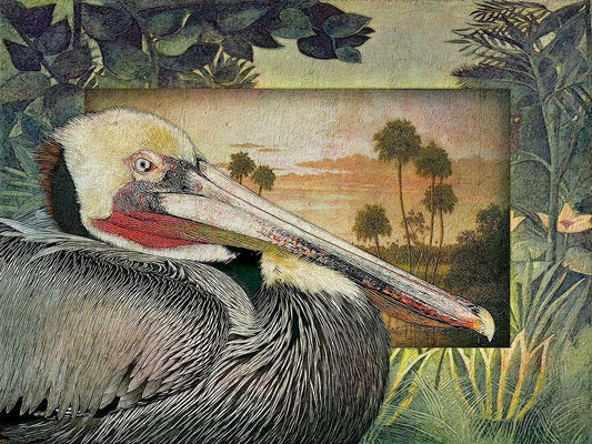 Pelican Paradise I White Modern Wood Framed Art Print with Double Matting by Hunziker, Steve