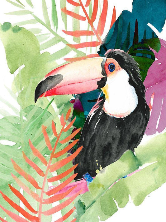 Toucan Palms I White Modern Wood Framed Art Print with Double Matting by Parker, Jennifer Paxton