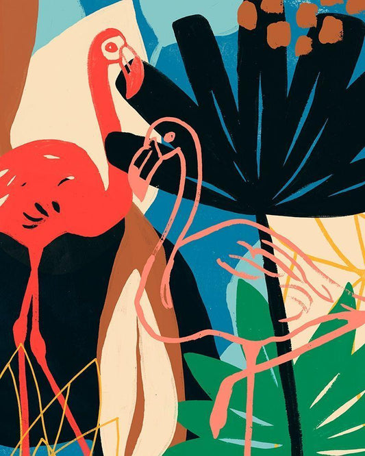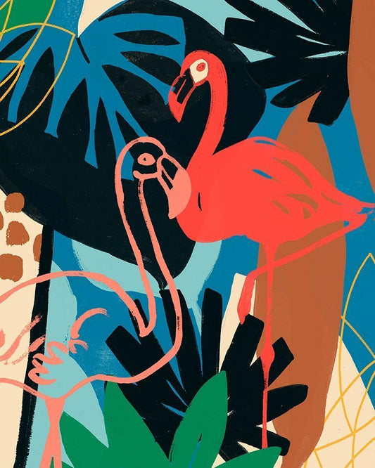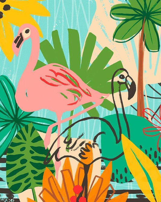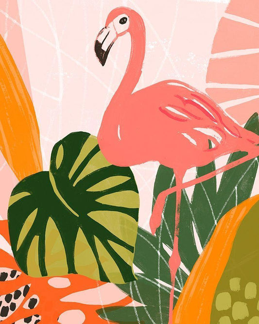 Jungle Flamingo I White Modern Wood Framed Art Print with Double Matting by Vess, June Erica