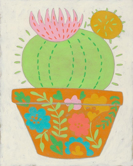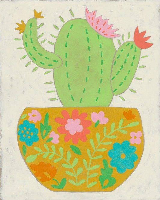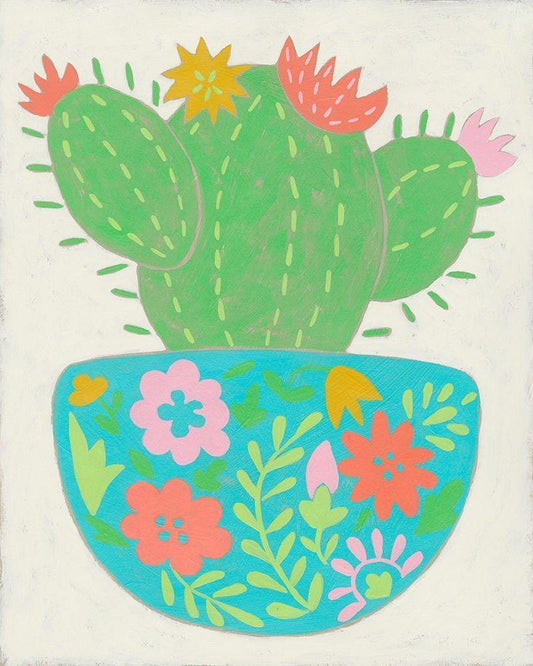 Happy Cactus II White Modern Wood Framed Art Print with Double Matting by Zarris, Chariklia