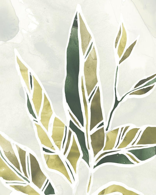Batik Leaves IV White Modern Wood Framed Art Print with Double Matting by Vess, June Erica