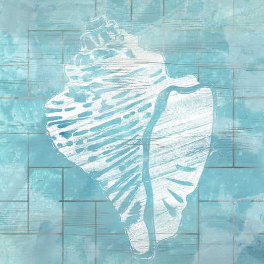 Cerulean Shell I White Modern Wood Framed Art Print with Double Matting by Vess, June Erica