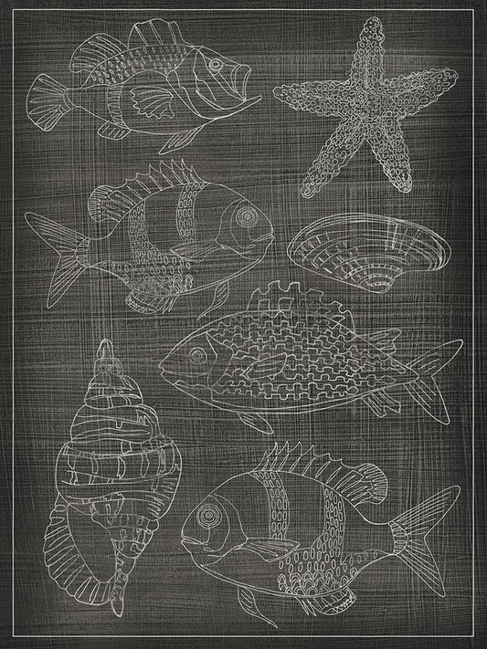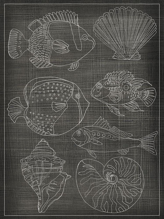 Four Fish I White Modern Wood Framed Art Print with Double Matting by Scarvey, Emma