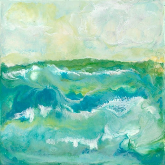 Turquoise Sea I White Modern Wood Framed Art Print with Double Matting by Holland, J.