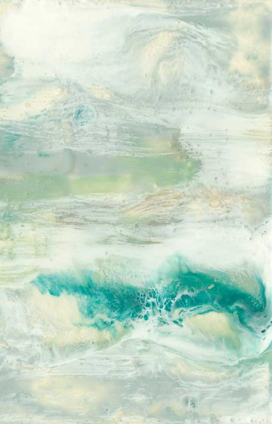 Serene Seafoam I White Modern Wood Framed Art Print with Double Matting by Goldberger, Jennifer