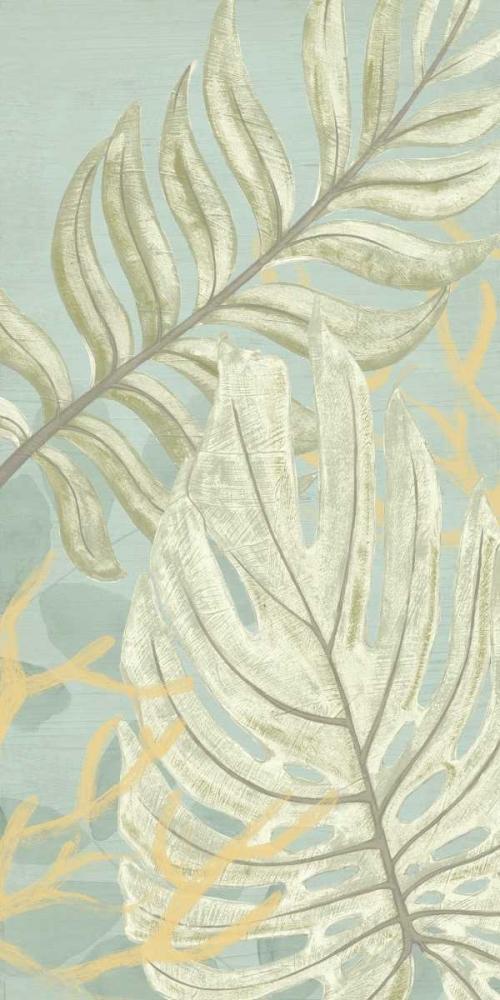 Palm and Coral Panel II White Modern Wood Framed Art Print with Double Matting by Vess, June Erica