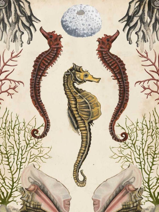 Antiquarian Menagerie - Seahorse White Modern Wood Framed Art Print with Double Matting by McCavitt, Naomi