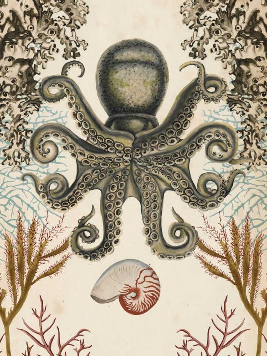 Antiquarian Menagerie - Octopus White Modern Wood Framed Art Print with Double Matting by McCavitt, Naomi