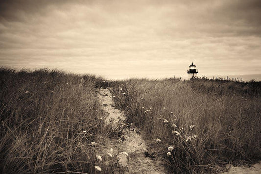 Nantucket Light Sepia White Modern Wood Framed Art Print with Double Matting by Aledanda
