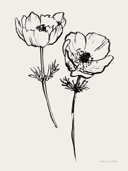 Ink Anemones II Black White Modern Wood Framed Art Print with Double Matting by Miller, Sara Zieve