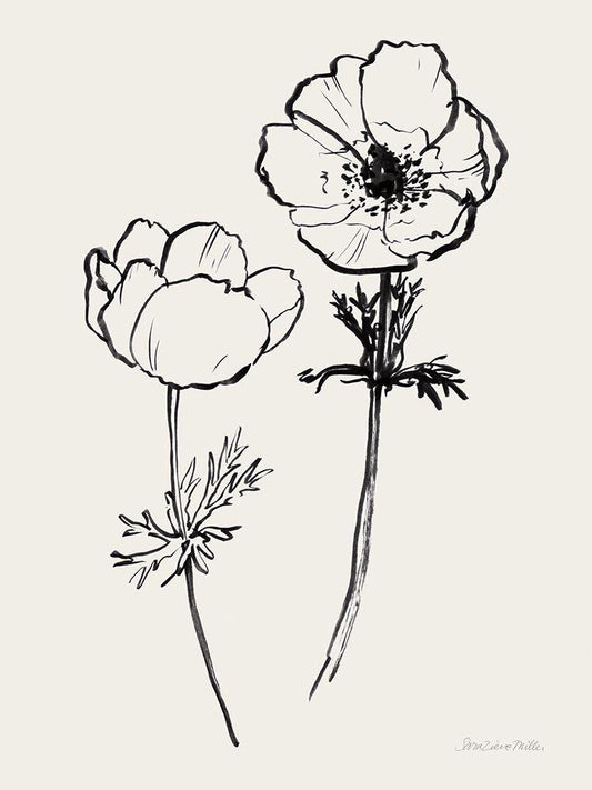 Ink Anemones I Black White Modern Wood Framed Art Print with Double Matting by Miller, Sara Zieve