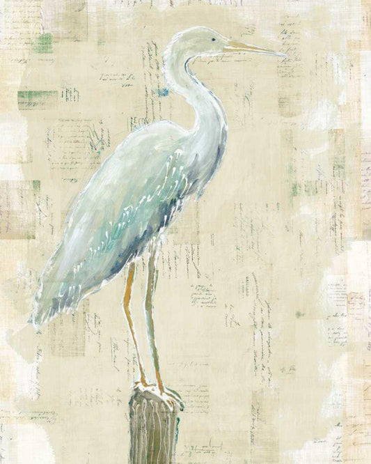 Coastal Egret I v2 no Aqua White Modern Wood Framed Art Print with Double Matting by Schlabach, Sue