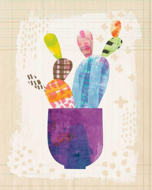 Collage Cactus II on Graph Paper White Modern Wood Framed Art Print with Double Matting by Averinos, Melissa