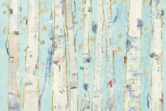 Far From Blue I Gold Leaves White Modern Wood Framed Art Print with Double Matting by Day, Kellie