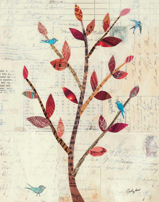 Red Leaf Tree no Border White Modern Wood Framed Art Print with Double Matting by Prahl, Courtney