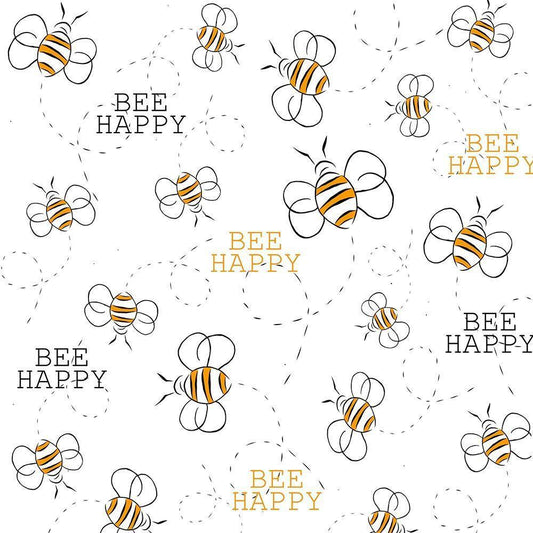 Bee Happy White Modern Wood Framed Art Print with Double Matting by Allen, Kimberly
