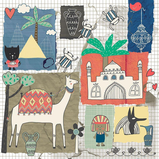 Travel To Egypt White Modern Wood Framed Art Print with Double Matting by HUE and MI and Sangita