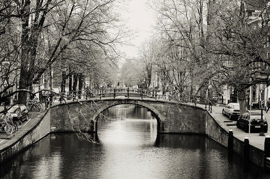 Amsterdam Canal White Modern Wood Framed Art Print with Double Matting by Jenny Rainbow Fine Art