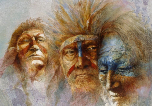 Three Chiefs White Modern Wood Framed Art Print with Double Matting by Lund, Denton