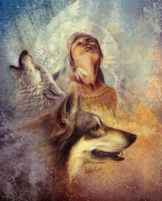 Call Of The White Wolf White Modern Wood Framed Art Print with Double Matting by Lund, Denton