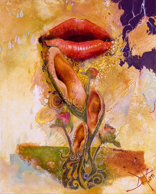 Tears Falling As Rain White Modern Wood Framed Art Print with Double Matting by Lund, Denton