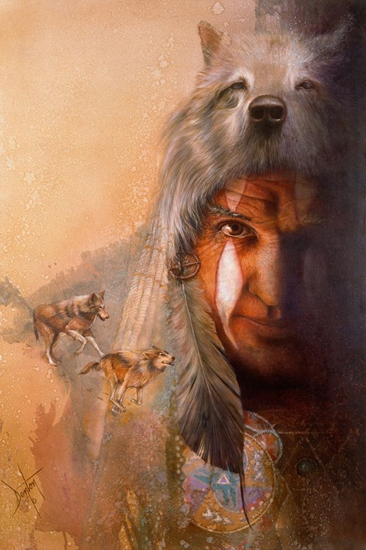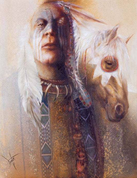 Spirit Of Tatanka White Modern Wood Framed Art Print with Double Matting by Lund, Denton