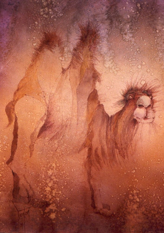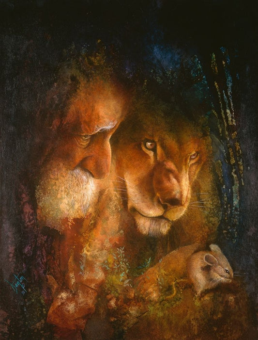 The Lion And The Mouse White Modern Wood Framed Art Print with Double Matting by Lund, Denton